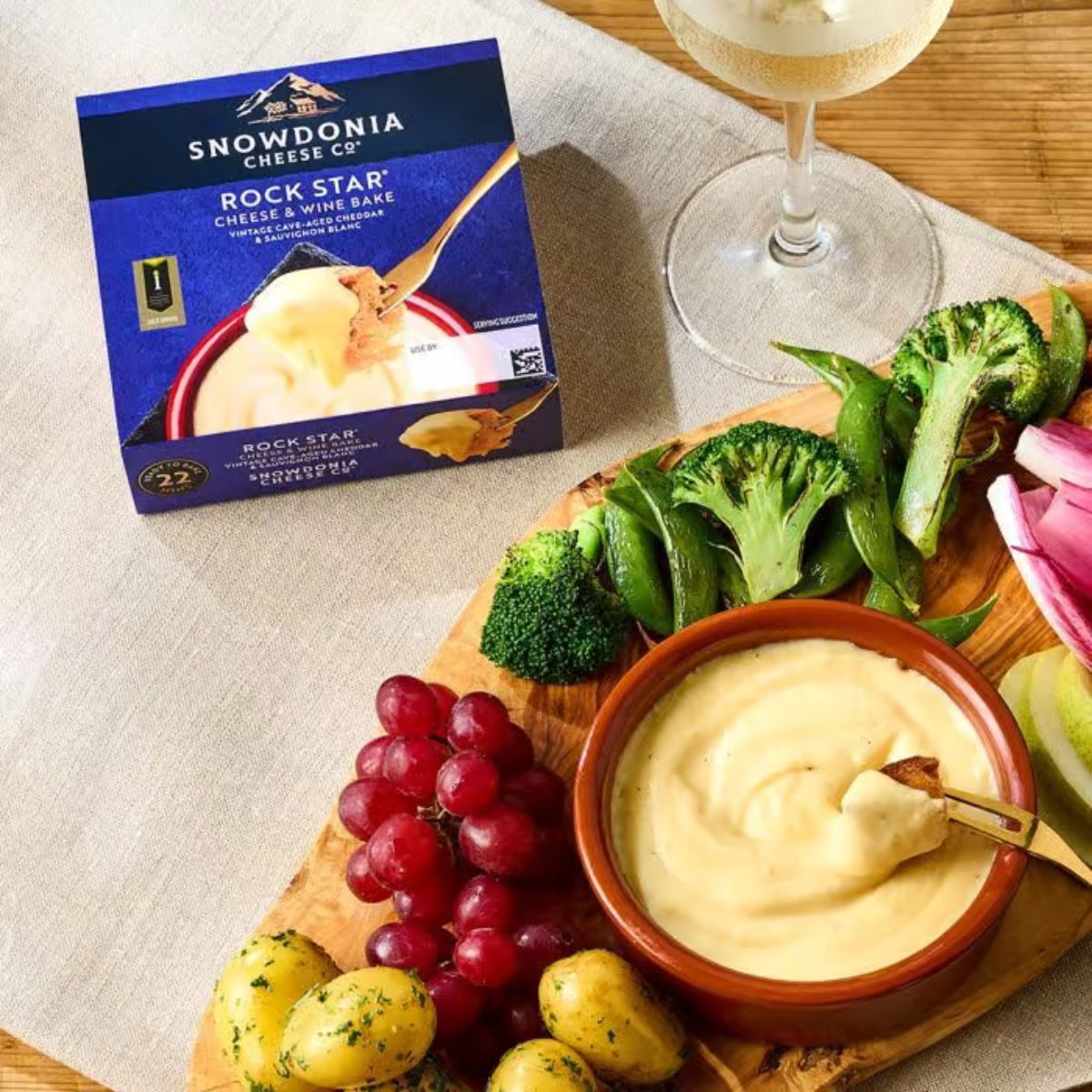 A delicious sharing dip, served hot from the oven in a stylish terracotta ramekin. Rock Star vintage Cheddar, matured deep inside Welsh slate caverns in the heart of Snowdonia, is blended with cracked black pepper and a dash of Sauvignon Blanc. Relish this indulgent, creamy bake with chunks of crusty baguette, crudités, cornichons and a glass of chilled white wine, such as an Alsatian Riesling.