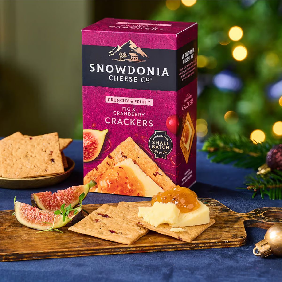 Packed with juicy chunks of figs and cranberries. Handcrafted with extra virgin olive oil. These sweet and fruity crackers are the perfect carrier for Rock Star vintage cave-aged Cheddar, any blue cheese, or a hard continental cheese such as a nutty Gruyère. We make our crunchy Fig & Cranberry Crackers in small batches with no artificial colours, flavours or preservatives and then bake them the traditional way. They’ll quickly become your new cheese-course favourite.